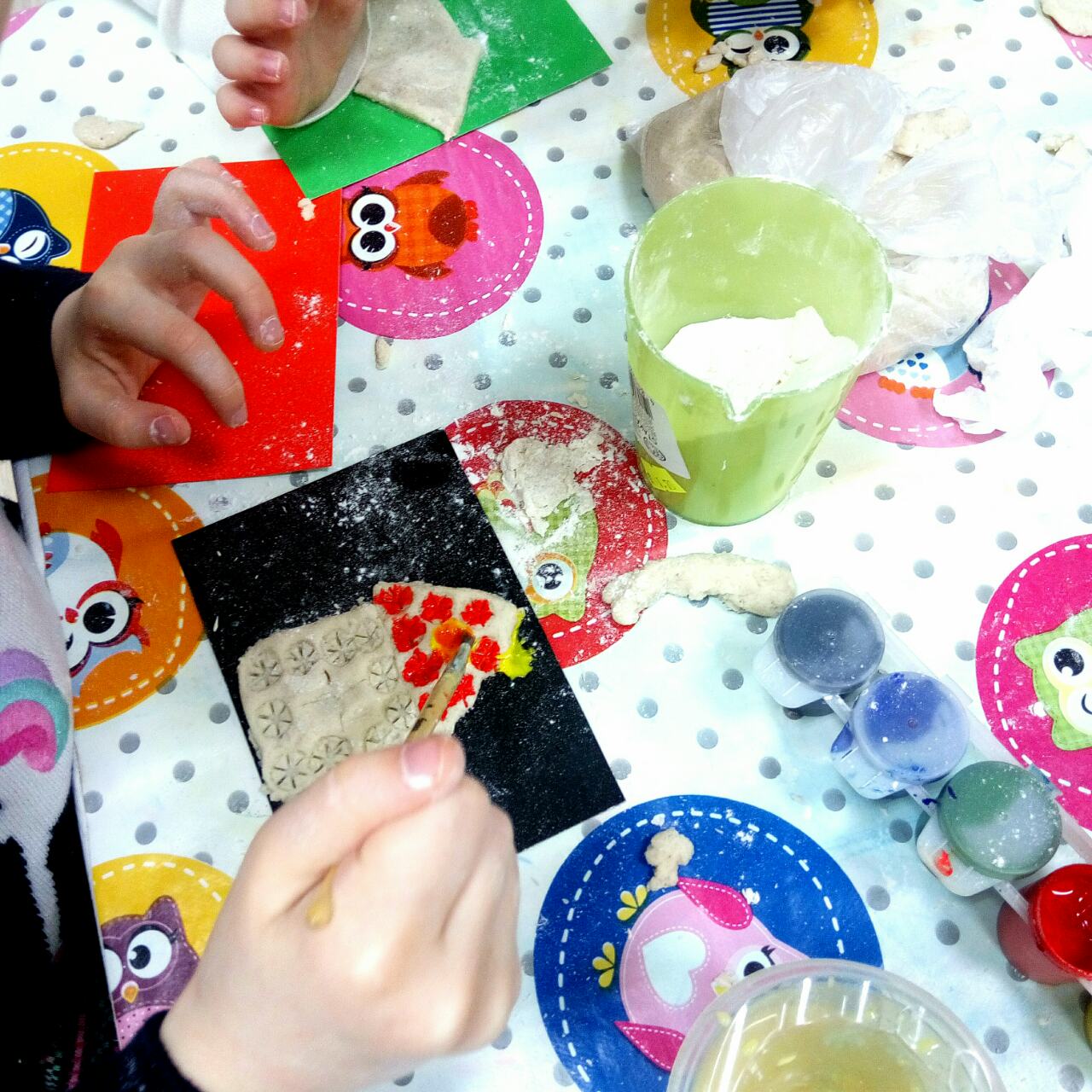 Нарисовали дерево и каждый ребенок посадил на веточку своего снегиря из теста.
