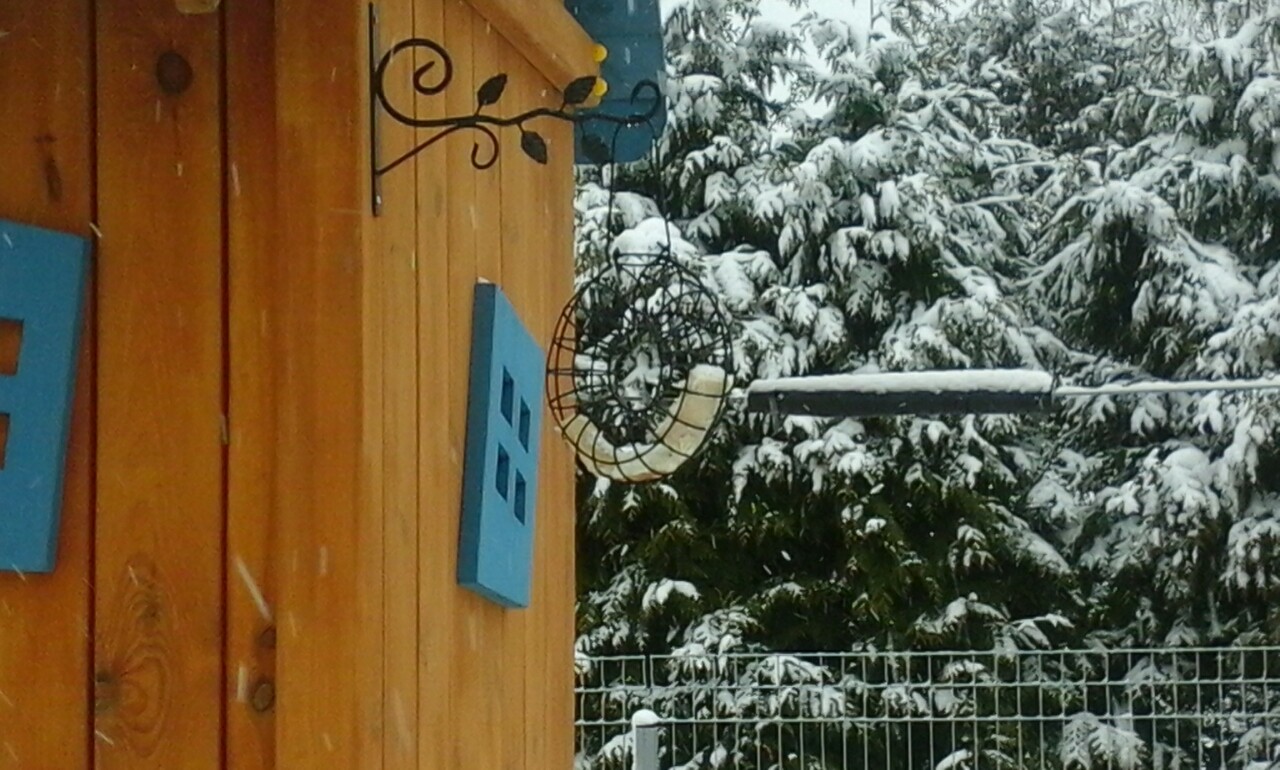 Кормим птичек среди заснеженных деревьев, наблюдаем за ними и следим, чтобы кормушка всегда была полной. Соорудили кормушку для больших и маленьких птичек прямо на детской площадке